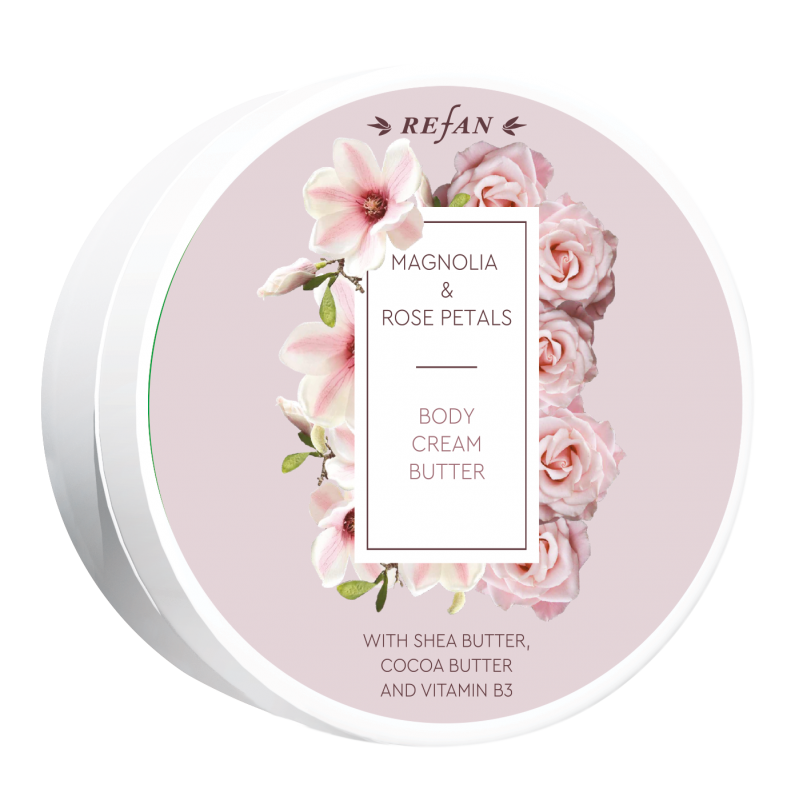 Beurre corporel à l’odeur douce fleurie de magnolia et de rose ayant un effet bénéfique sur les sens, crée une sensation de fraîcheur et de pureté. Offre à la peau un confort total. La combinaison de principes actifs rétablit l’équilibre hydrique, hydrate la peau et la rend douce et élastique.
