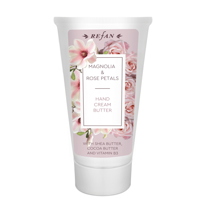 Crème beurre pour les mains à la texture légère, douce comme de la soie pour un soin quotidien. La vitamine B3 et les beurres végétaux naturels de carité et de cacao nourrissent et en même temps hydratent la peau des mains, tout en éliminant les zones sèches et calleuses. Possède une odeur douce fleurie de magnolia et de rose ayant un effet bénéfique sur les sens.